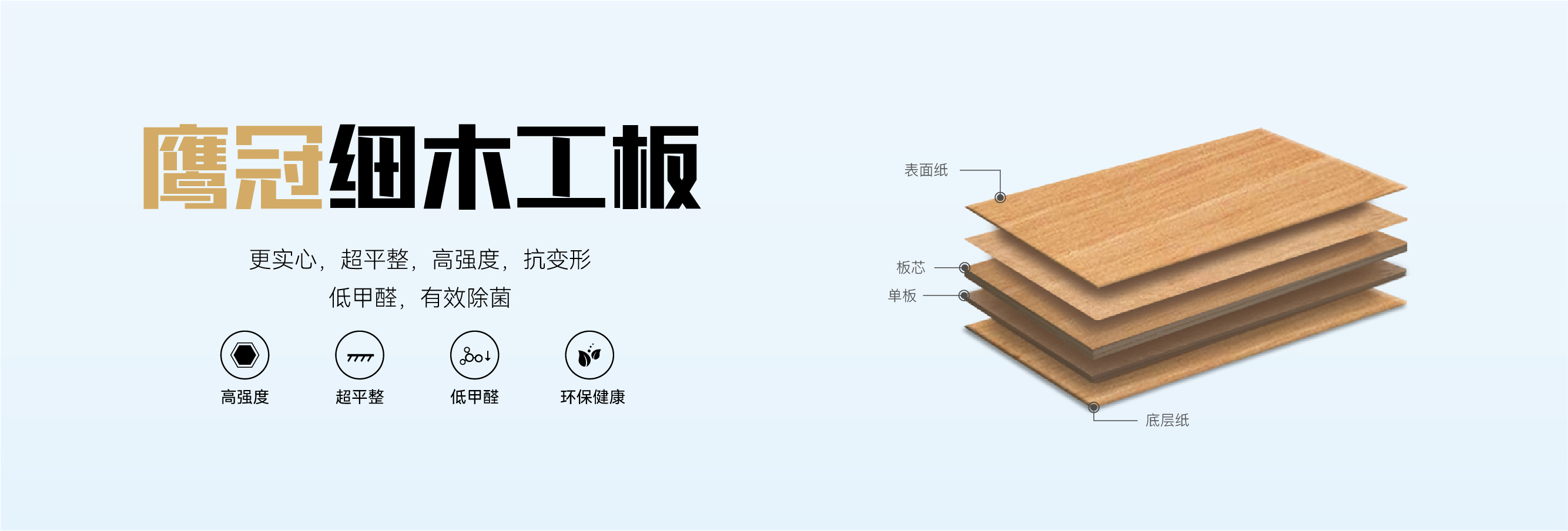 工艺科学 稳定不变形。鹰冠实木多层板采用树龄8年以上的优质桉木旋切成单板,采用进口设备经干燥、拼板、涂胶、热压、砂光而成厚度一致的板材,使用环保胶水为粘合材料,并使相邻层单板的纤维方向互相垂直排列胶合而成,最大限度控制木材应力,减少板材变形。